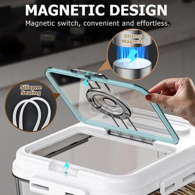 Flip-Top Magnetic Design: The lid of this bread container has a magnetic switch on the surface. Simply flip open the lid to access the contents, and it will automatically close, The entire lid can also be opened for use. It is equipped with silicone seals and strong magnets to ensure the airtightness of the bread storage container, making it convenient and quick to use.