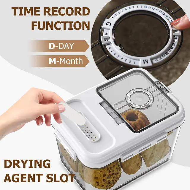 Time-Recording Bread Holder: This bread keeper can help you track the storage time of your food, accurate to the month and date, so you dont miss the optimal time for consumption. The transparent design of the bread box allows you to see the condition of the stored food clearly.