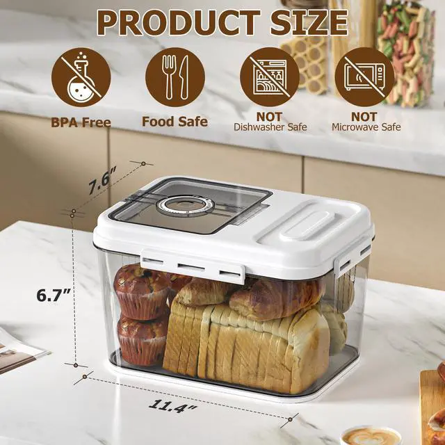 More Than Just a Bread Box: This bread storage container is made of food-grade material, BPA-free, with no irritating odors, and is durable. Our sealed bread container can store not only bread but also cereals, cookies, fruits, and more, making it very practical.