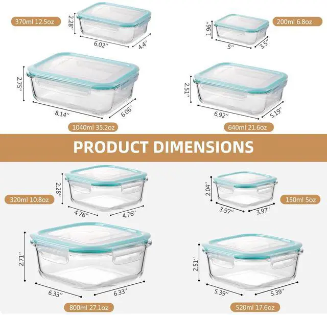 8-Piece Glass Container Set: This set includes 8 versatile food storage containers that range from 5oz to 35oz, perfect for all your meal prep needs, ensuring you have the right size for every portion