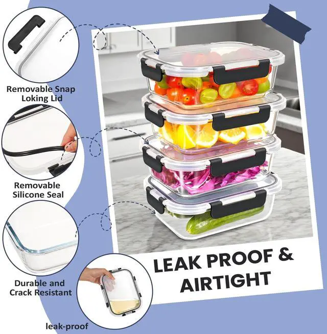 Airtight & Leakproof Lids: Each container comes with a snap-lock lid and silicone seal to keep food fresh longer, prevent spills, and make it safe for travel or office lunches.