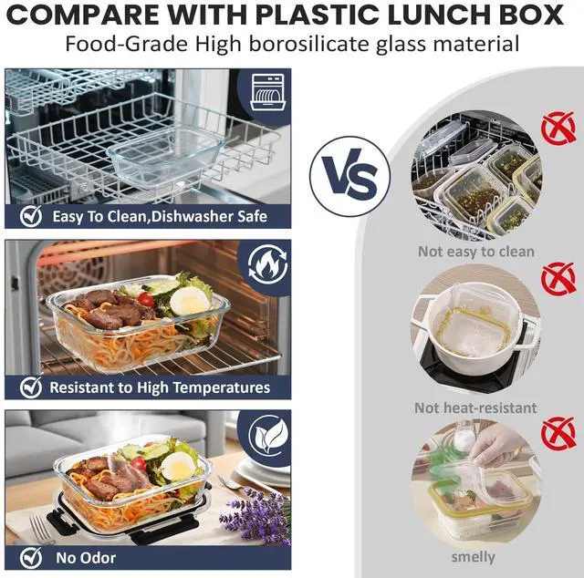 Oven, Microwave, Freezer & Dishwasher Safe: Made of premium borosilicate glass that withstands high and low temperatures. Reheat meals safely or store them in the freezer without cracking. (Lids are not oven-safe)