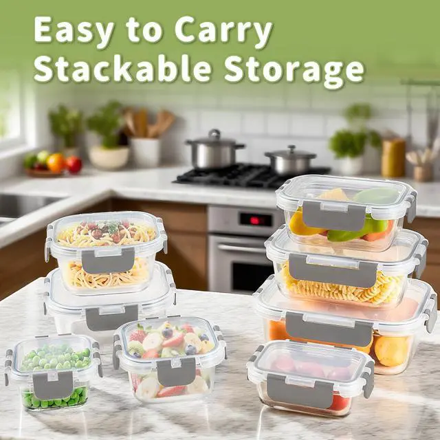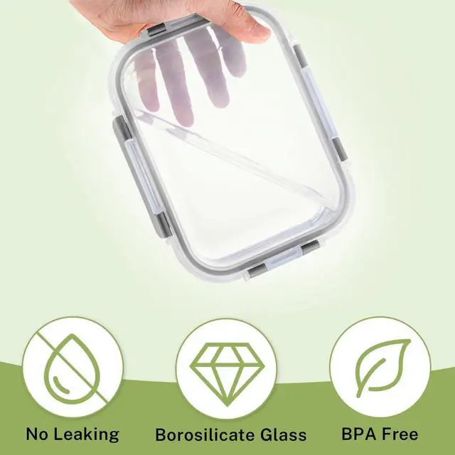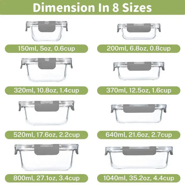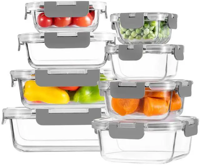 HOMBERKING 8 Packs Glass Food Storage Containers Set (8 lids & 8 containers)