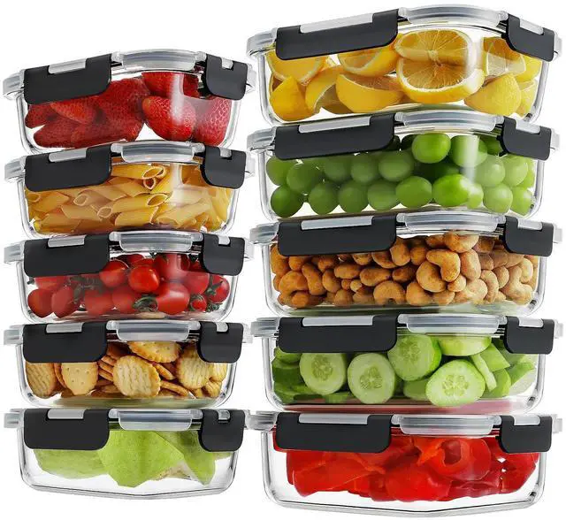 HOMBERKING 20 Pieces Glass Meal Prep Container Set (10 locking lids & 10 containers)