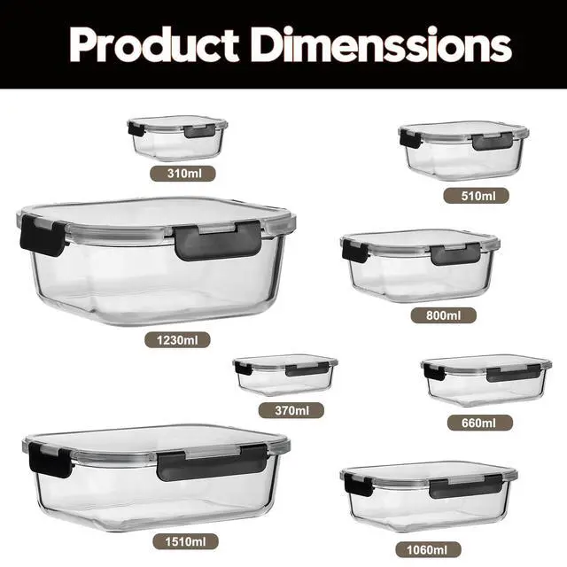 More Sizes Than Others Includes 8 containers (10.5oz---51.1oz), from mini sauce jars to large meal prep boxes, covering every storage need.