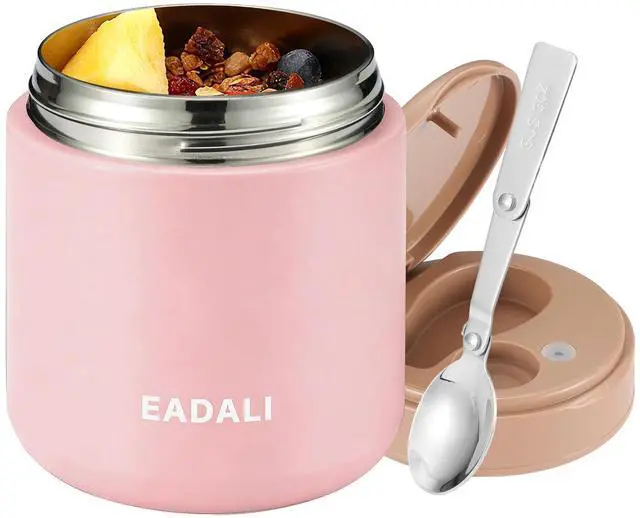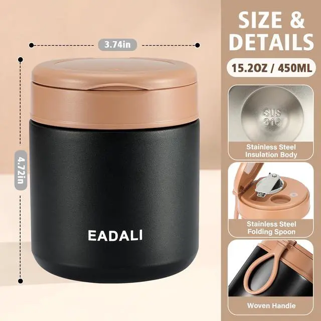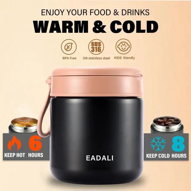 KID-FRIENDLY & TRAVEL READYDesigned with portability in mind, this hot food thermos features a convenient carrying handle and a leak-proof seal. The 15.2 oz (450ml) capacity provides the perfect portion size for children's school lunches, while still being a great portion-controlled option for adults at the office.