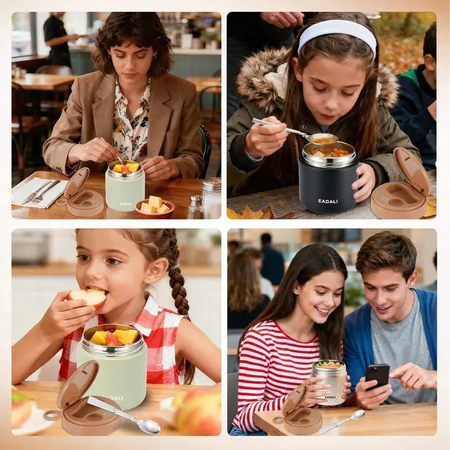 UPGRADED 316 STAINLESS STEEL & 100% SAFE Crafted with a premium 316 medical-grade stainless steel interior, this 15.2 oz insulated food jar outperforms standard containers in rust resistance and durability. It is completely BPA-free, PVC-free, and food-grade safe, giving parents peace of mind when packing healthy school lunches for kids.