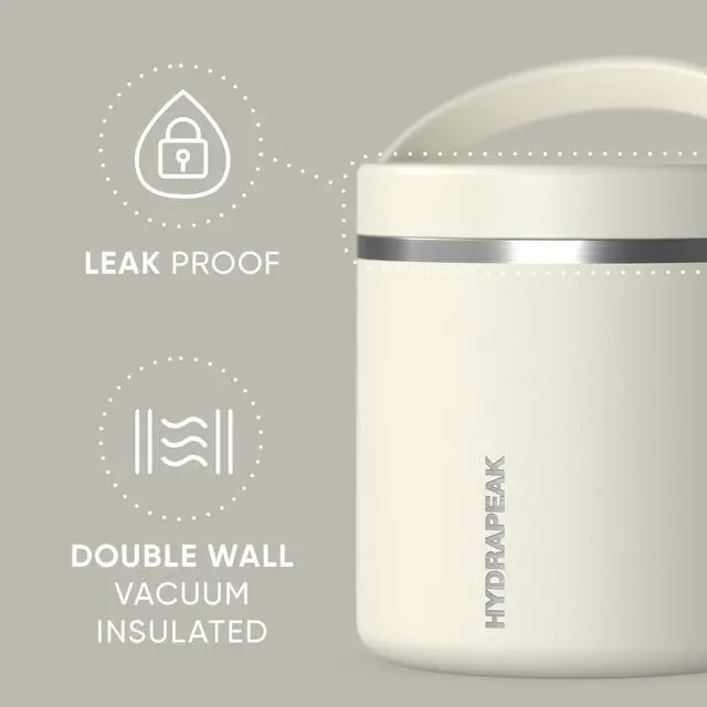 ALL DAY INSULATION; Hydrapeak's double wall vacuum insulation technology helps their insulated food container keep contents HOT for 10 HOURS, and COLD for 16 HOURS, making it the perfect lunch box