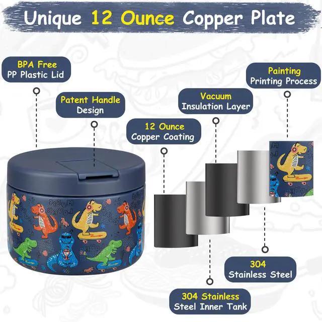 • Keep Food Warm and Cold: Our soup thermo with the insulated 18/8 (SUS304) stainless steel interior with vacuum seal.This will keep your little kids meals warm up to 4 hours or cold up to 8 hours. Capacity: 12oz(350ml). Small size and light weight, suitable for home, work or picnic etc.