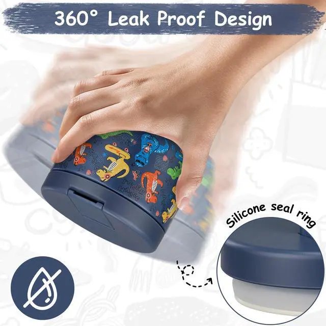 12oz Insulated Vacuum Food Jar with Buckle Lid Wide Mouth Soup Thermo for Hot Food Kids Leakproof Stainless Steel Lunch Container (Blue-Dinosaur)