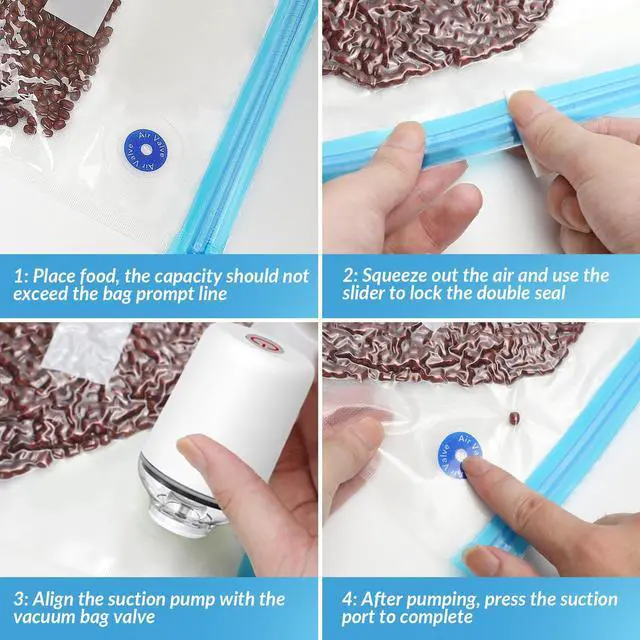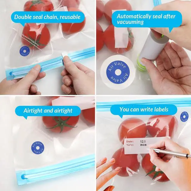 Double zipper keeps food fresh blocking out moisture and oxygen, Slows food spoilage and off-flavors. This means less wasted food and money.