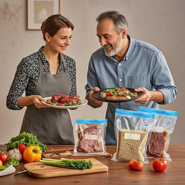 Sous vide bags vacuum are made of PE/PA food grade material, keep your food fresh,moisture-proof, anti- deterioration, anti-worm, more longer storage,food storage freezer safe.