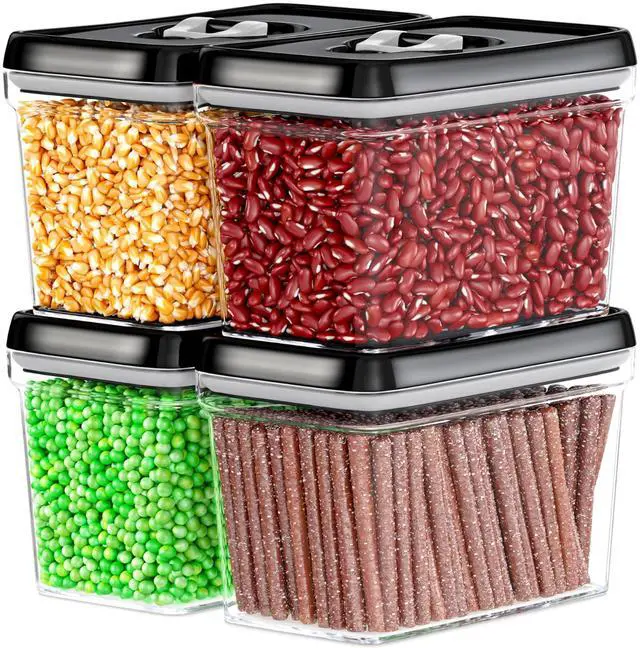 With beautiful black lids and a clear body, these rectangular airtight containers spruces up your kitchen while allowing you to easily monitor the contents.