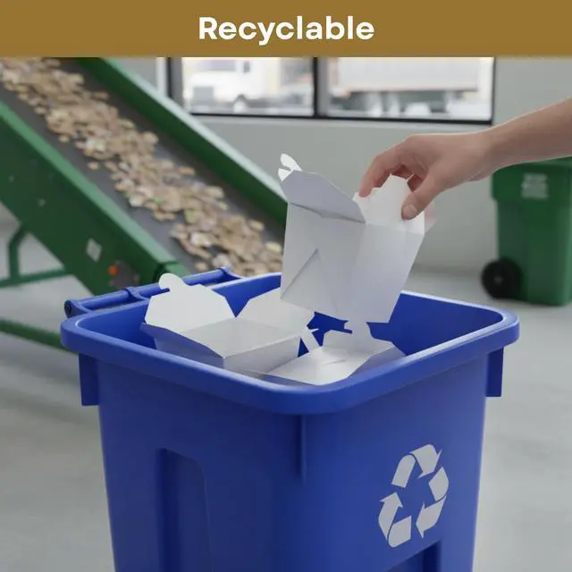 Recyclable Material Made with paper-based materials that can be recycled after use, offering a practical and eco-conscious packaging solution for food packagingideal for restaurants, catering, and leftovers on the g.