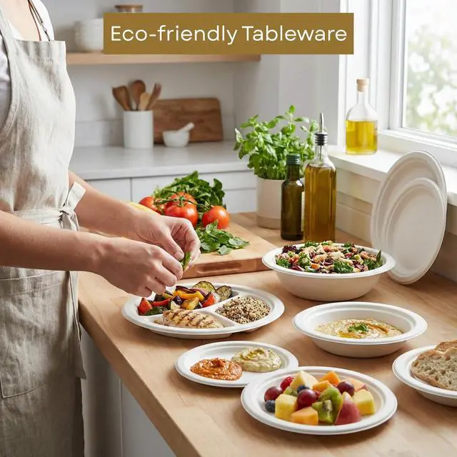 • PFAS-Free & Eco-Safe: Made from natural bagasse (sugarcane pulp), these compostable plates and bowls are completely PFAS-freesafe for customers and the planet.