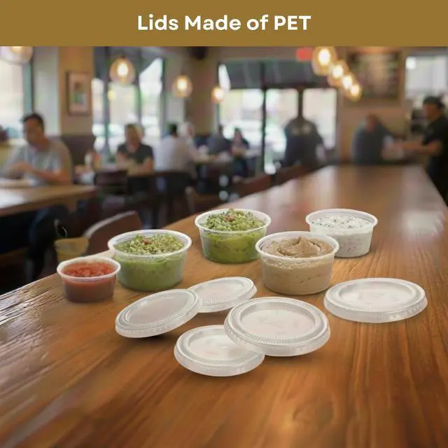 Small, leak-proof cups for condiments, sauces, sides, toppings, and samples.
