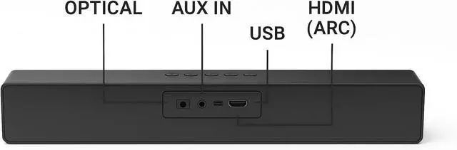 • Supports Bluetooth® 5.3 (10M range), HDMI ARC, AUX, USB, Optical, FM Radio, and Micro SD for universal compatibility.