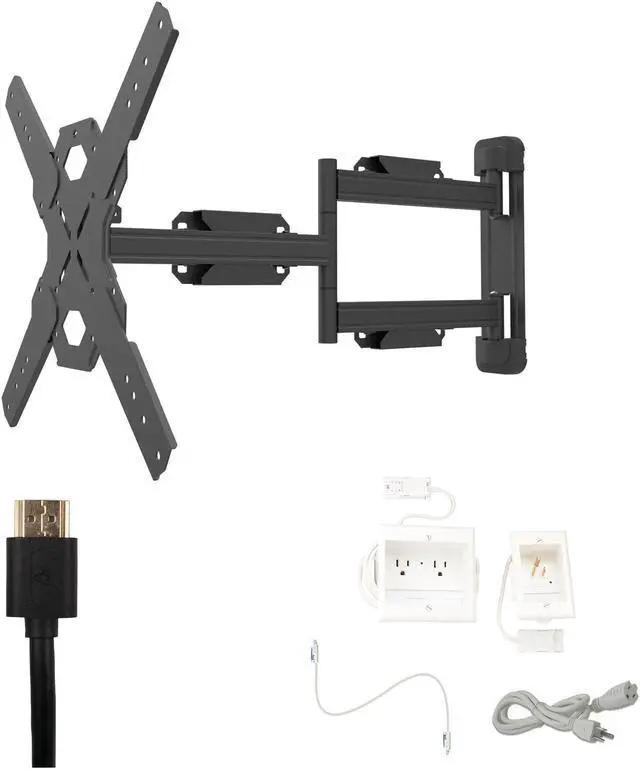 Capable of extending 27.6 inches from the wall, the Kanto PS400 full motion mount offers unparalleled range of motion for screens as large as 70 inches. Extend your TV out of recessed areas or swivel it up to 180° to reach around corners and accommodate angled seating arrangements with this 30 to 70 inch TV wall mount. A 14° tilt range also helps to reduce glare and further improve line-of-sight with your TV. Sitting 1.9 inches from the wall when fully retracted, the Kanto PS400s low-profile design incorporates plastic wall plate covers and integrated cable management to ensure a professional looking setup.