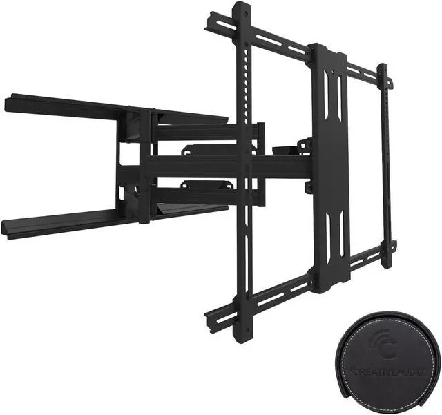 The Kanto PDX700 extra-wide full motion TV wall mount is designed to give you flexibility and peace of mind when mounting TVs as large as 100 inches. Built to meet extensive UL safety requirements, this 42 100 TV wall mounts extra-wide wall plate and heavy-duty articulating arms comfortably support 150 pounds, even at full extension. Swivel your TV to accommodate angled viewing and tilt it to reduce glare and improve line-of-sight when mounting above eye-level. The Kanto PDX700 includes a drill template and an assortment of hardware for mounting to brick, concrete or wood-studs up to 24 inches apart. Integrated cable management and wall plate covers are also provided to ensure a clean, professional looking setup.