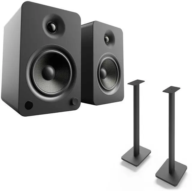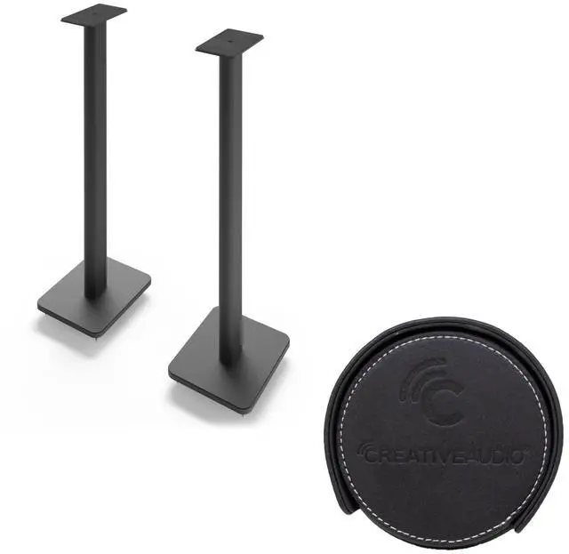 Kanto YU6MB YU6 Matte Black 200 Watt Peak Powered Speakers, Pair, with Pair of SP32PL 32" Floor Speaker Stands, Black - This bundle includes Kanto YU6MB YU6 Matte Black 200 Watt Peak Powered Speakers with Bluetooth, Built-In Phono Preamp and Kevlar® Drivers, Pair, Kanto SP32PL Pair of 32" Floor Speaker Stands with Security Mounting Screws, Pair, Black, and a Creative Audio coaster.