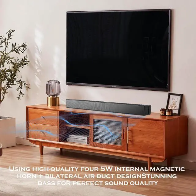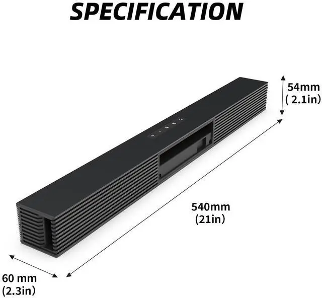 COMPACT BUT MIGHTY: The Soundbar is a compact, slim audio sound bar device that fits perfectly on desks and sits comfortably under your TV. Use the buttons on the side of the soundbar or the supplied remote to go truly wireless and adjust the volume, equaliser settings, source and much more. An ideal sound bar for TV or PC, fill your room and immerse yourself with cinematic sound in your very own home.