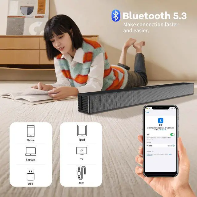 TRUSTWORTHY AUDIO: This package contains 1x Soundbar, 1x Remote, 1x HDMI (ARC) cable, 1x Power cable, 1x Coaxial cable, 1x AUX cable and a user manual.