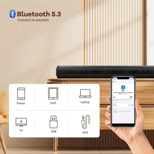 The Speaker is a compact, slim audio sound bar device that fits perfectly on desks and sits comfortably under your TV. Use the buttons on the side of the soundbar or the supplied remote to go truly wireless and adjust the volume, equaliser settings, source and much more. An ideal sound bar for TV or PC, fill your room and immerse yourself with cinematic sound in your very own home.