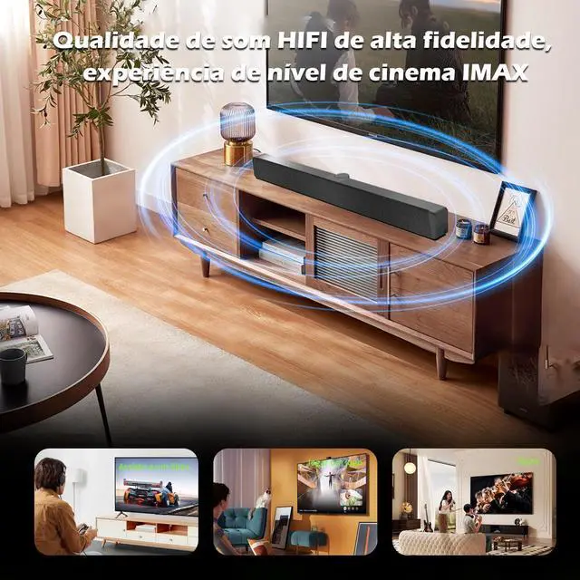 Full-range Drivers: Experience true cinematic sound in the comfort of your own home with this small but powerful TV soundbar. Featuring dual full-range speakers produce hi-fi sound with strong bass, clear mids, and bright treble. Mini compact soundbar is perfect for placing on a desk or using with your TV, PC, laptop, or projector, great for living room or bedroom. Whether you're watching movies or listening to music, soundbar TV speaker will bring your favorite content to life in any room of your home.