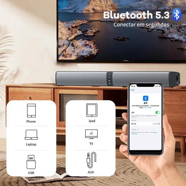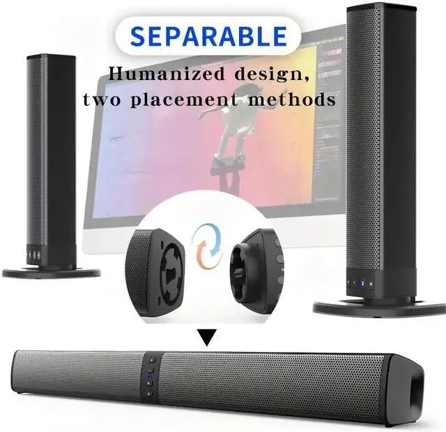 WIRELESS AND WIRELESS MULTIPLE CONNECTION bluetooth sound bar speakers for tv Support wireless Bluetooth V 5.0, RCA interface and 3.5MM stereo audio input interface. Can be connected to a variety of audio equipment such as smart TV, tablet, U disk, T card, laptop, desktop computer, mobile phone, DVD.