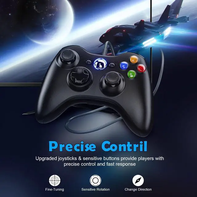 Wide CompatibilityPerfectly compatible with Microsoft Xbox 360 & Slim, PC Windows 11/10/8/7. (Note! This controller is not compatible with Xbox One). A wired connection allows you to operate with zero latency.