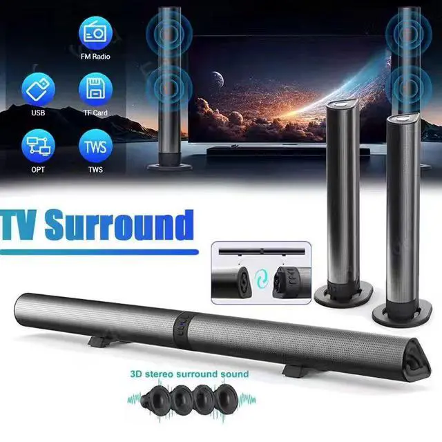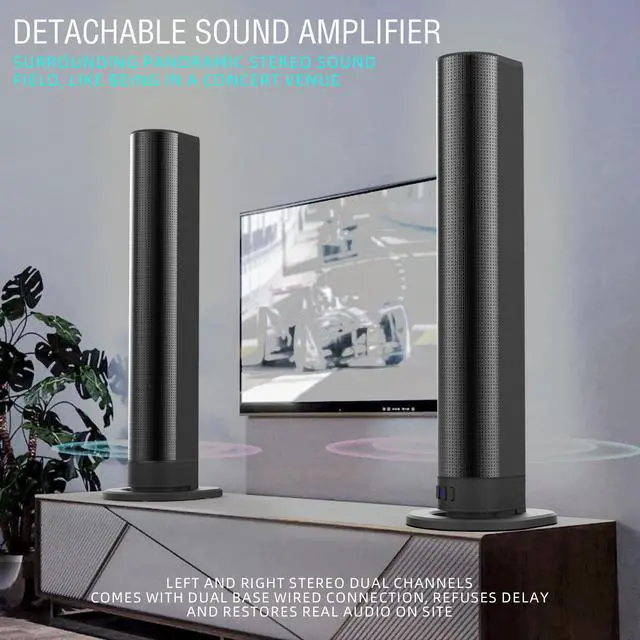 Transform your home entertainment with this 2-in-1 Bluetooth TV Soundbar. Featuring 40W powerful sound, Bluetooth 5.3, built-in battery, and waterproof design, it's perfect for TV, movies, music, outdoor parties, and KTV sessions.