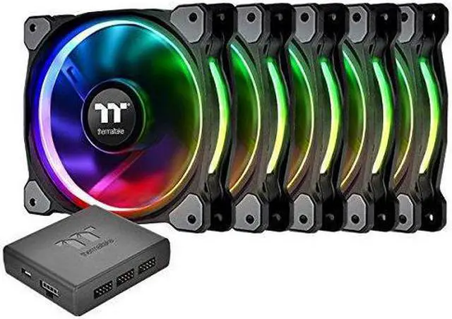 Details: Thermaltake Riing Plus 12 RGB TT Premium Edition 120mm Software Enabled Circular 12 Controllable LED Ring Case/Radiator Fan - Five Pack - CL-F054-PL12SW-A Thermaltake combines the patented gorgeous LED light with cutting-edge technology to deliver a brand new experience of using PC cooling Thermaltake Riing Plus 12 LED RGB Radiator Fan TT Premium Edition. A 120mm high-static pressure fan with a patented 16.8 million colors LED ring and 12 controllable single LEDs the Riing Plus 12 RGB features compression blades hydraulic bearing and a digital fan controller and can be controlled by the patented Riing Plus RGB Software. Cool your system with high performance Thermaltake Riing Plus 12 RGB!