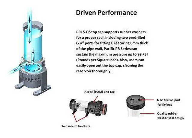 Durable Design: Featuring 6mm thick of the pipe wall Pacific PR Series can sustain the maximum pressure up to 99 PSI (Pounds per square inch). Easily open out the top cap for cleaning.