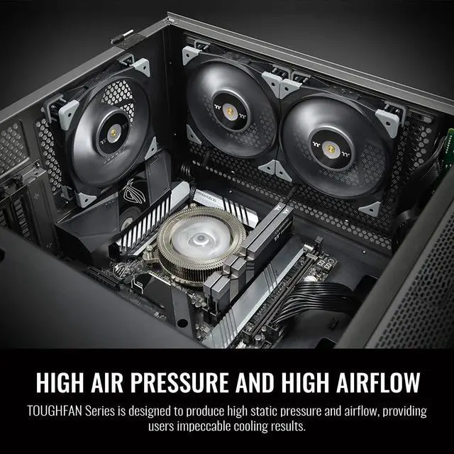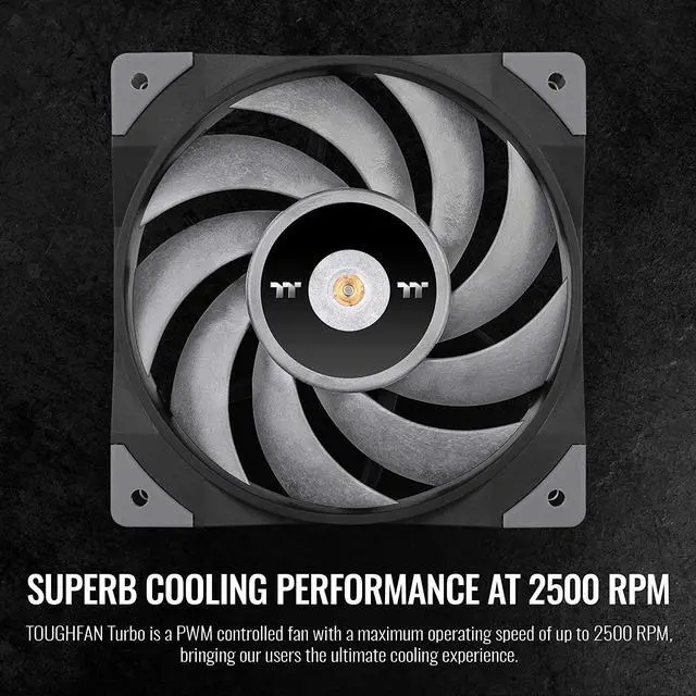 Thermaltake TOUGHFAN Turbo is a PWM controlled high static pressure fan with a maximum operating speed of up to 2500 RPM, fulfilling users\u2019 high-end cooling needs \u2022P/N: CL-F121-PL12GM-A \u2022FAN
