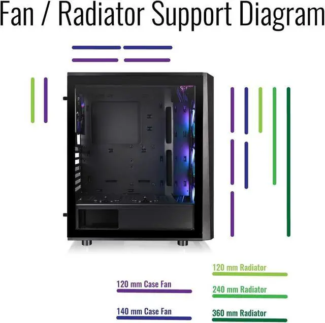 Built for those who need all the cooling their case can handle, the versa J24 TG ARGB is custom built for what the very best tempered glass and mesh paneling have to offer. As a bonus style point, The J24 ARGB comes with three 120mm 5V a RGB LED front fans which are addressable to deliver 16. 8 million-color RGB illumination and awesome ventilation. this model comes ready to sync with RGB Capable motherboards from Asus, Gigabyte, MSI and as rock. Supporting the latest PC hardware and high-end GPU solutions, It gives you all the utility benefits you need.