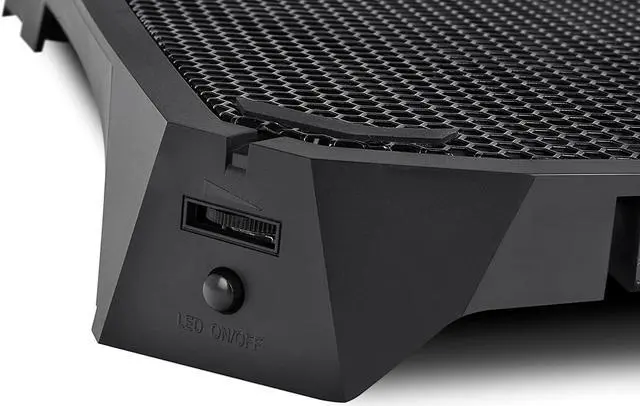 A massive built-in quiet 200 millimeter LED fan with adjustable fan speed allows high cooling performance to your laptop/notebook