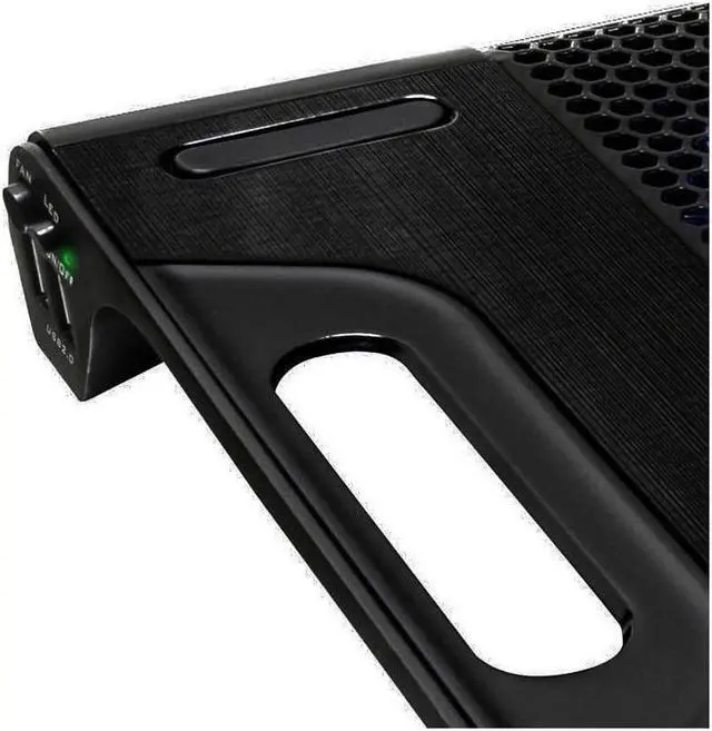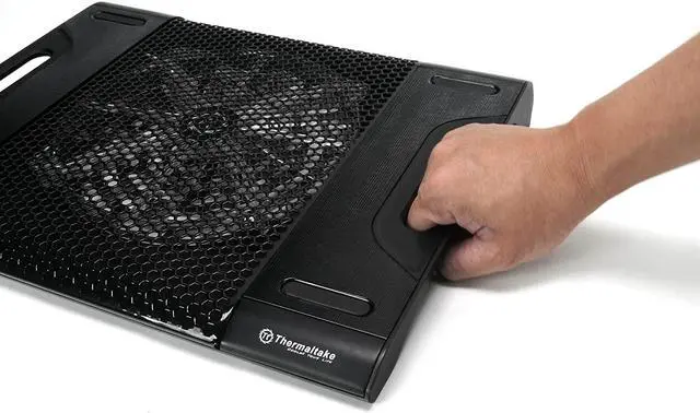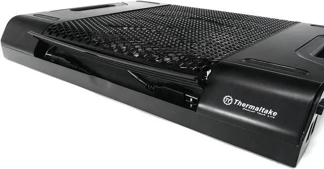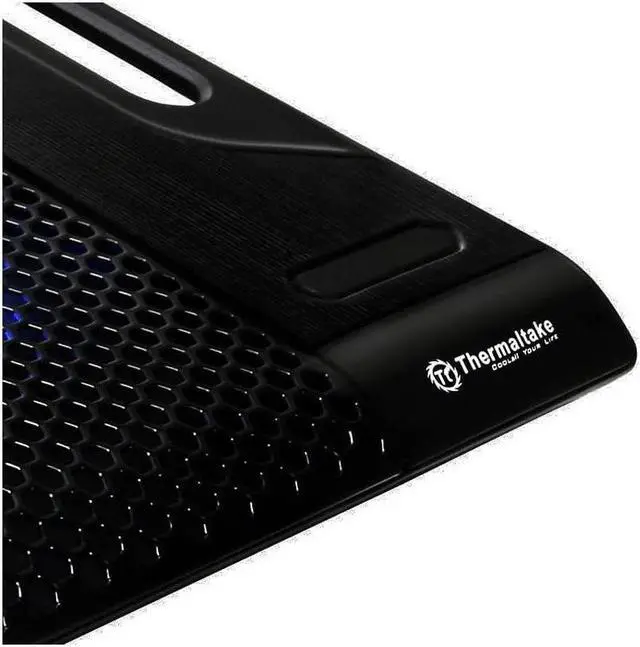 You know heat is very bad for electronics. You know your notebook is running hot. Now you will know how Thermaltake's latest Massive23 LX performance notebook cooler can help you to cool down your notebook that holds some of the most important files or memories of your life. Massive23 LX, with its massive and oversized 230mm ultra-quiet fan effectively push incredible amount of air while producing unnoticeable noise output. The embedded blue LEDs inside the fan as well as the fan itself can be easily turned On or Off with a built-in switch. Handles designed into the cooler allow users to effortlessly carry the notebook cooler with them wherever they go. Low power draw from the fan puts minimum strain on your notebook's battery power.Air Flow 18 - 54.6 CFM.Supports laptop size from 10-Inch to 17-Inch.