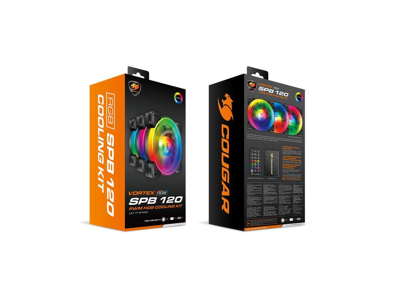 Cougar Hydraulic Vortex RGB SPB 120 mm PMW HDB Cooling Kit with addressable RGB Lighting, Core Box v2, Remote Controller and Three Vortex RGB SPB 120 Cooling Fans (3 Pack)