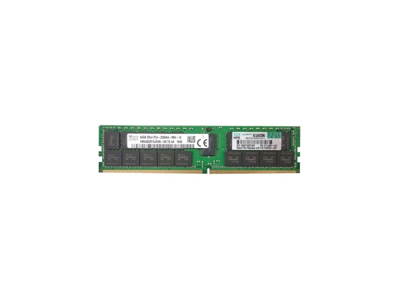 - General InformationManufacturer: Hewlett Packard EnterpriseManufacturer Part Number: P20504-001Manufacturer Website Address: http://www.hpe.comBrand Name: HPEProduct Line: SmartMemoryProduct Name: SmartMemory 64GB DDR4 SDRAM Memory ModuleProduct Type: RAM ModuleTechnical InformationMemory Size: 64 GBMemory Technology: DDR4 SDRAMMemory Voltage: 1.20 VNumber of Modules: 1 x 64GBMemory Speed: 3200 MHzMemory Standard: DDR4-3200/PC4-25600Memory Rank: Dual-rankError Checking: ECCSignal Processing: RegisteredCAS Latency: CL22Device Supported: ServerPhysical CharacteristicsNumber of Pins: 288-pinForm Factor: DIMMMiscellaneousCompatibility: HPE Proliant DL385 G10 Plus ServerEnvironmentally Friendly: YesEnvironmental Certification: RoHS