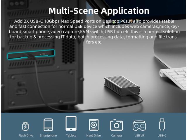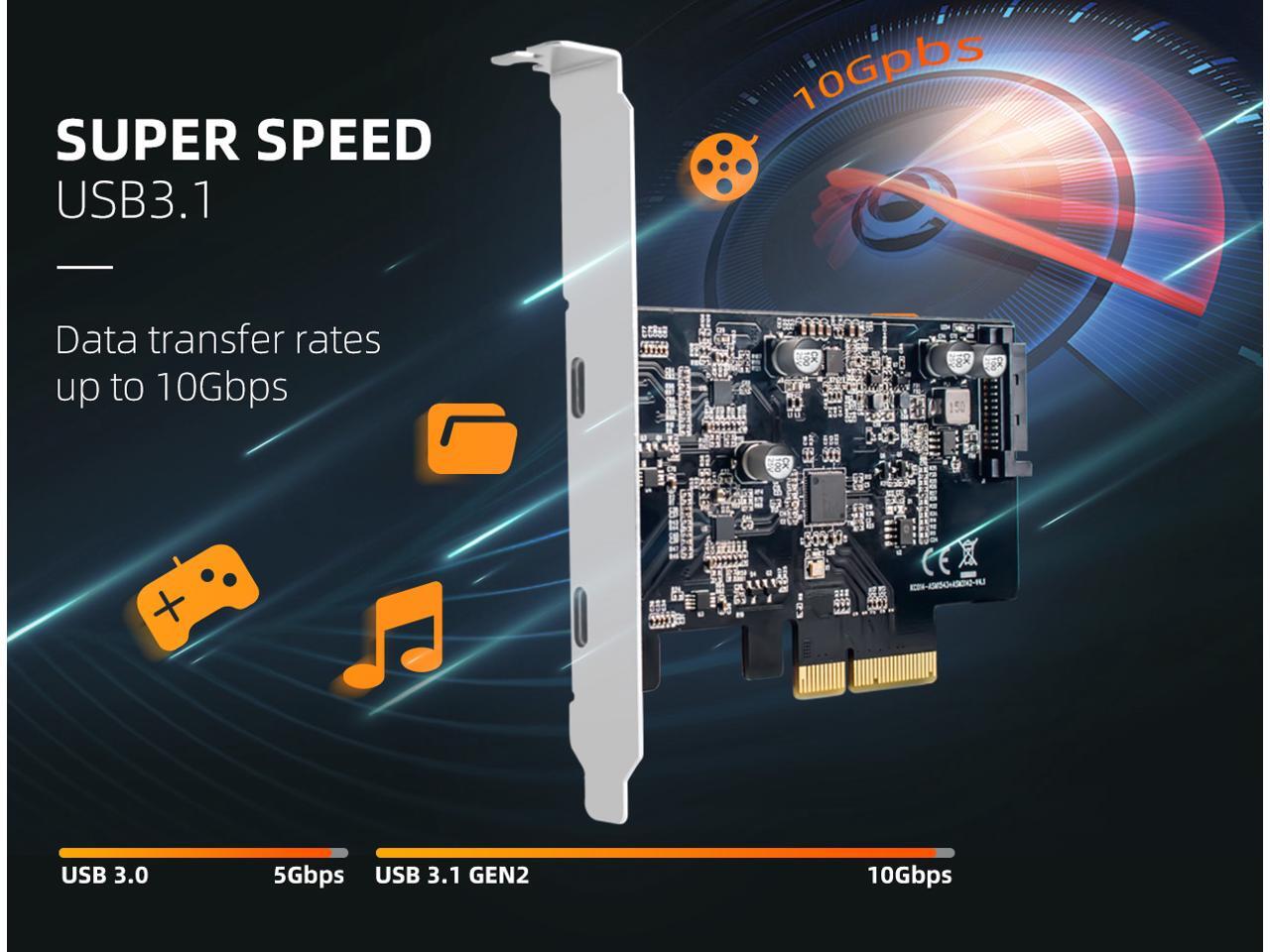 - Add two USB 3.1 Gen 2 type-C (10 Gbps) ports to your new PC or older PCIe-equipped desktop computer, transfer files between USB devices and the computer at fast speeds.