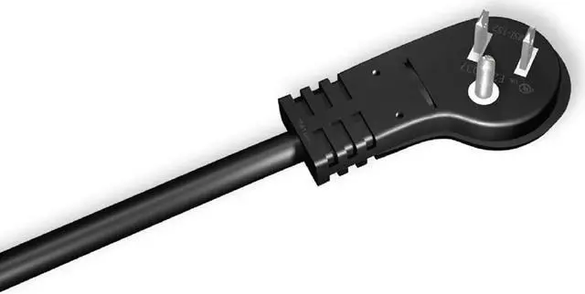 • 45° angled 3-prong connector prevents blocking outlet space for other power connection.