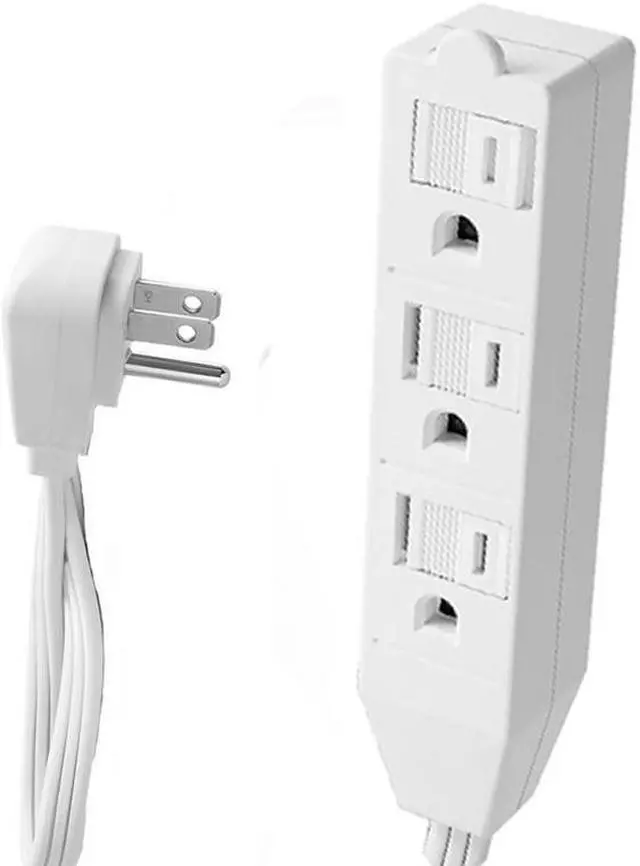 1.5 Feet White Durable Heavy Duty 3 Outlet Indoor 16AWG Flat Plug Extension Cord