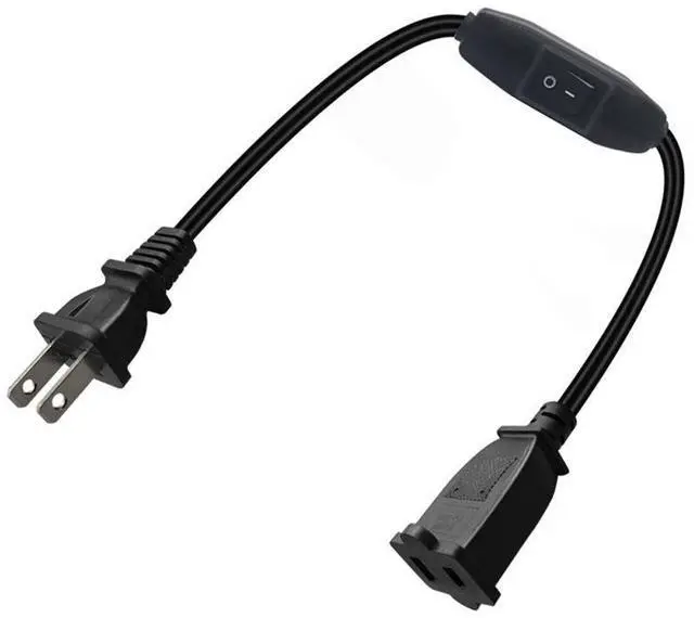 - With On Off Switch: 2 Prong US/Canada extension cord with 12Amp/125V switch, suitable for desk lights, chargers, power adapters, etc. Nema 115P Male to Nema 115R Female.