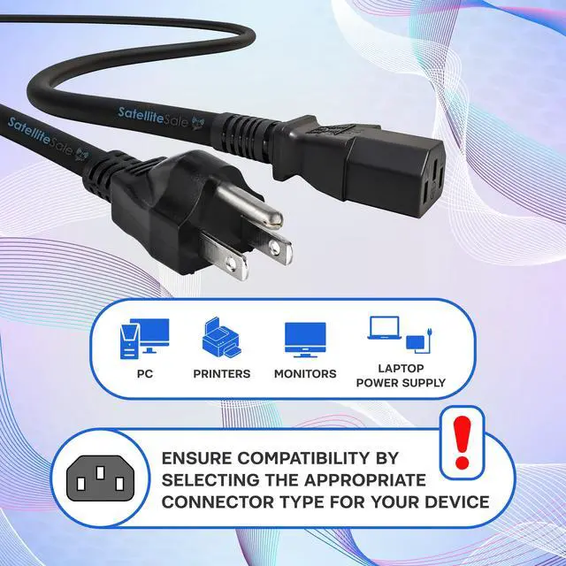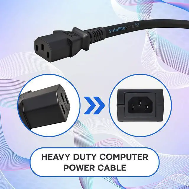 SatelliteSale Universal Heavy Duty Computer Power Cable Male NEMA 5-15P to Female C13/C14 is perfect for users who regularly plug and unplug cables. Our cord provides excellent compatibility with a wide range of devices and works well as a spare cord. Plug-in your electronic equipment, including computers, instrument amplifiers, professional audio equipment, and virtually all professional video equipment. or any other devices with a C13/C14 power connection. Every cable we sell is a perfect match for both commercial and residential use: you can replace your existing overused, old, broken, damaged, or misplaced power cable and even add some extra length between devices for your convenience. Rated for use with North American power outlets (USA, Canada). Please, check the product pictures to make sure this cable is compatible with your devices. In addition, we assure the lifetime service of each cord to deliver a positive experience to our clients.