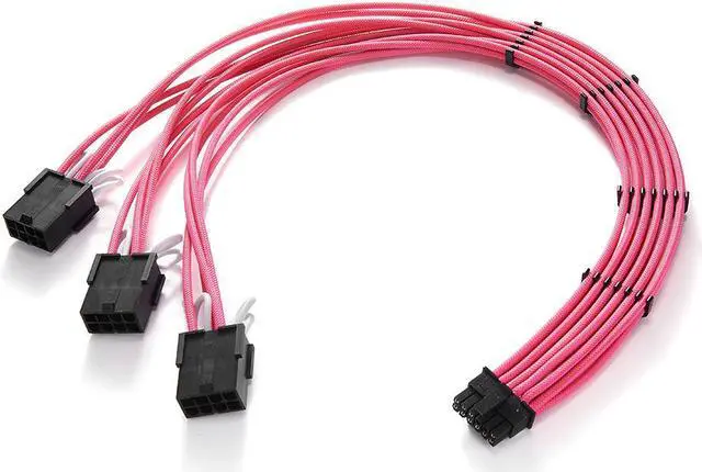 FormulaMod RTX 3090TI 4090 16Pin(12+4) to 3x8Pin PCI-E 5.0 Sleeved Extension Cable,12Pin to 3x8Pin Compatible 3090ti and RTX4090 4080 Series,17.7 inch with Cable Combs Pink