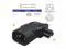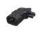 An angled power connector. The plug type for this adapter is IEC 320 C14 to C5, featuring a 90-Degree Angle AC Converter design with an IEC 3-Pole Male to Female 90-Degree Angle Configuration.