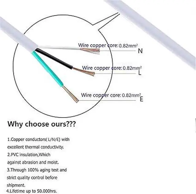 US standard 3*0.82mm²copper core wire inside,female 3 prong connector end,AC Power Cord Cable with 3-Prong US Plug into a standard outlet.(Note:LED tube lights do not included !)