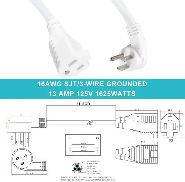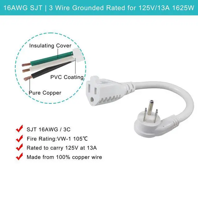 ![Alt view image 6 of 7 - [5 Pack] Flat Plug Short Power Extension Cord - 6inch White Low Profile Flat Head 3 Prong Grounded Indoor Extension Cord,16AWG 13amp Household Appliance Electrical Extension Cord with Flat Wall Plug](https://c1.neweggimages.com/productimage/nb640/C1TYD25081412Q2CVDF.jpg)
