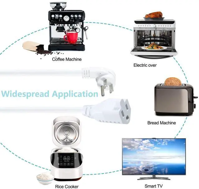 When your kitchen appliance's power cord is too short to connect to a high outlet, a 6-inch cord will do the trick and give your appliance a little extra length. The standard NEMA 5-15R is compatible not only with 2-socket power cables but also with 3-socket power cables