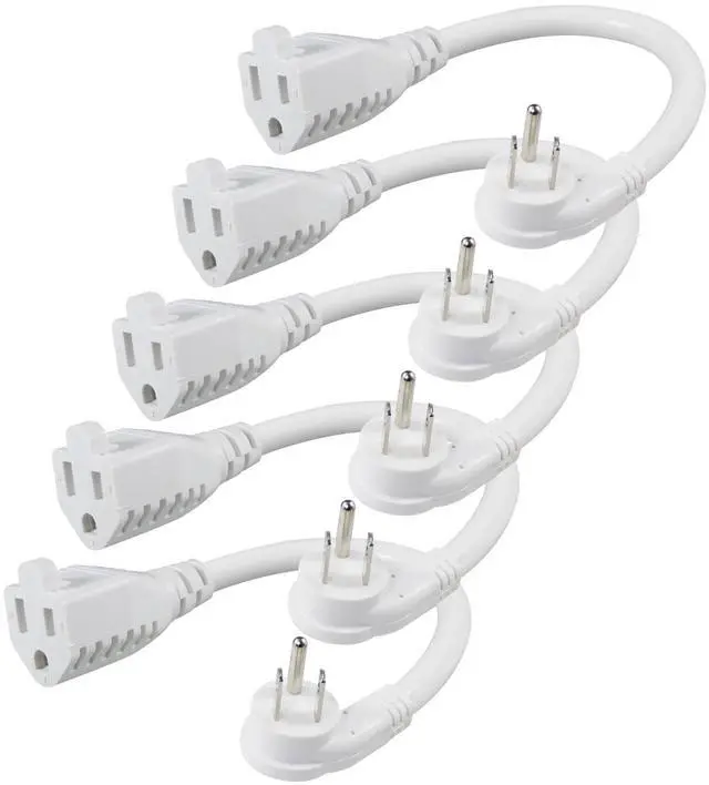![Alt view image 5 of 7 - [5 Pack] Flat Plug Short Power Extension Cord - 6inch White Low Profile Flat Head 3 Prong Grounded Indoor Extension Cord,16AWG 13amp Household Appliance Electrical Extension Cord with Flat Wall Plug](https://c1.neweggimages.com/productimage/nb640/C3H4D2512170GQM8QA5.jpg)